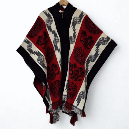 Poncho Alpaka mit Rollkragen / Ärmeln & Ethnomuster für Frauen No 3 rot, AndenPoncho, portofrei in DE, BESTSELLER