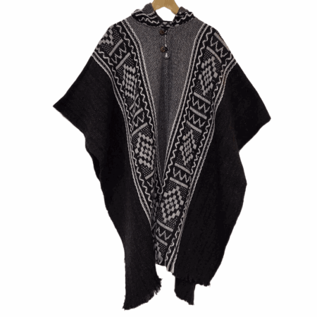 Poncho Alpaka mit Rollkragen / Ärmeln & Ethnomuster für Frauen No 15 schwarz, Anden Poncho, portofrei in DE, BESTSELLER