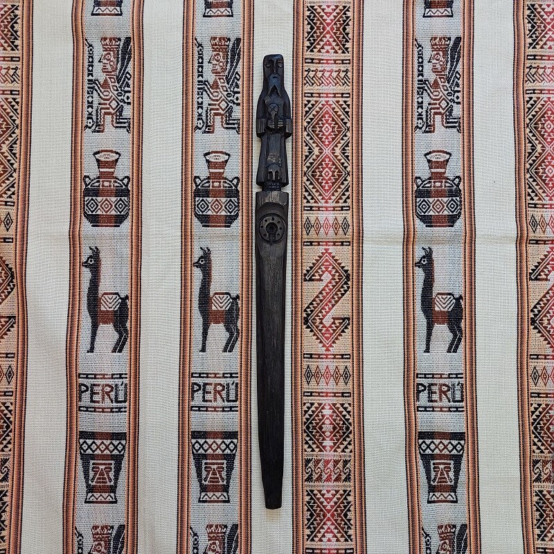 Diese Stäbe halten die positive Energie des Raumes während einer Zeremonie. Von Hand geschnitzt aus hartem Holz werden Sie von den Schamanen mit der Mesa (Mestana) am Platz oder im Raum platziert.