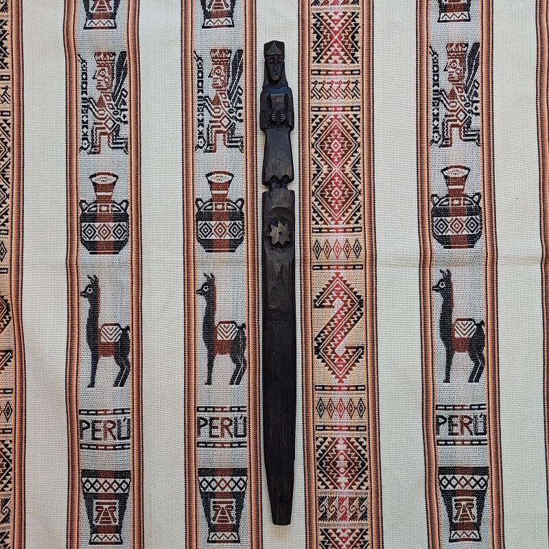 Diese Stäbe halten die positive Energie des Raumes während einer Zeremonie. Von Hand geschnitzt aus hartem Holz werden Sie von den Schamanen mit der Mesa (Mestana) am Platz oder im Raum platziert.