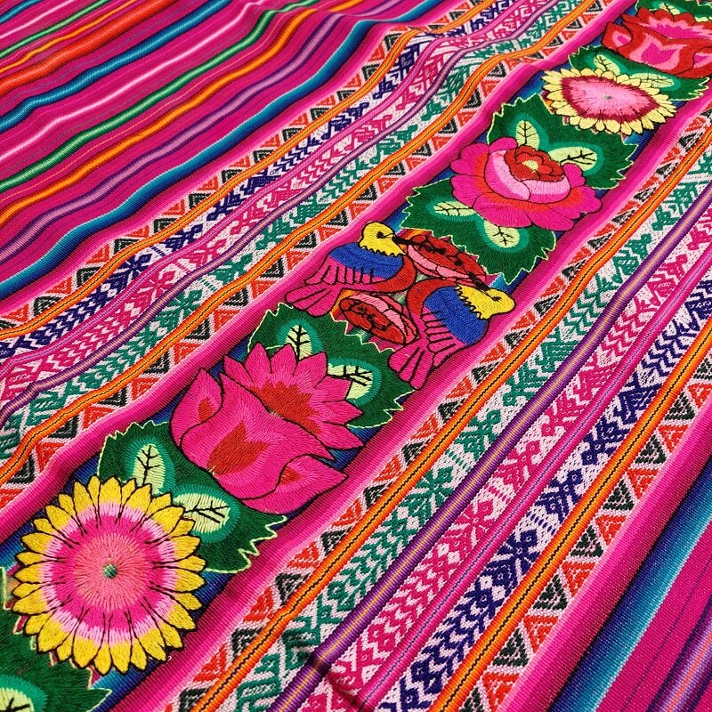 Schamanische Ritualdecke, aufwendig bestickt, Ritualtuch aus Peru No 3 pink