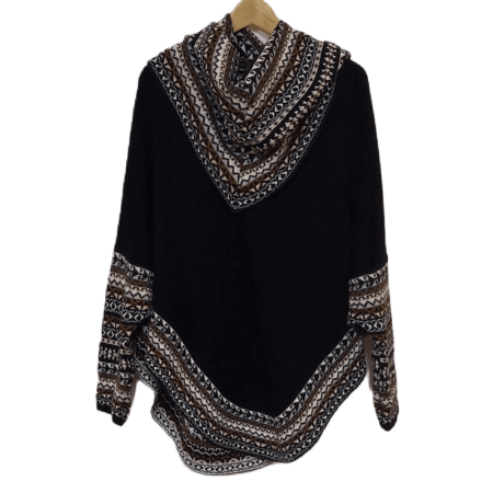Poncho Alpaka mit Rollkragen / Ärmeln & Ethnomuster für Frauen No 15 schwarz, Anden Poncho, portofrei in DE, BESTSELLER